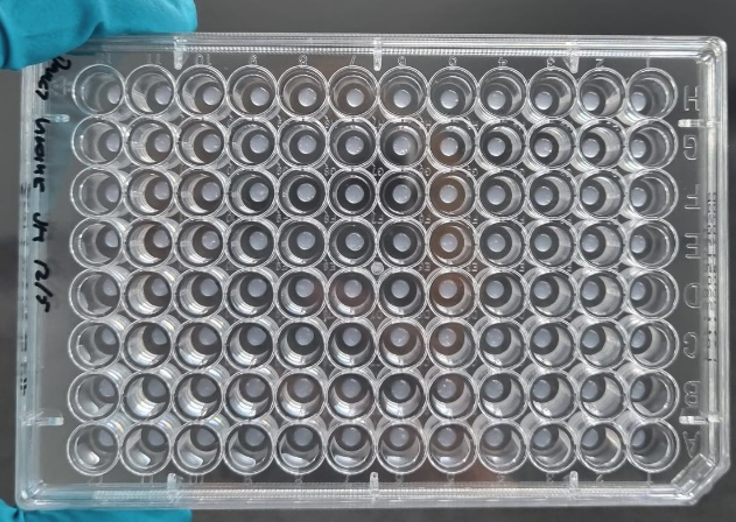 在96孔板中打印的10µL CELLINK Vivoink 与 Panc-1 液滴的图像,呈现了交联前的状态。